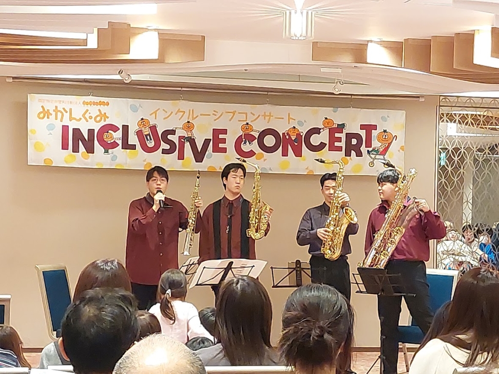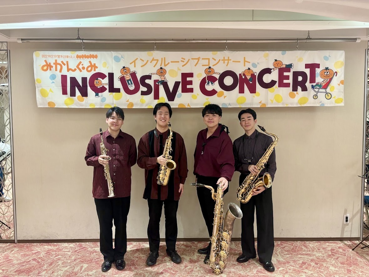演奏を行ったのは、サックス奏者の彦坂優太さん、小泉剛志さん、諏訪直風さん、北井陽平さんの4名です。音楽大学在学生・卒業生による実力派メンバーならではの、力強さと繊細さを併せ持った美しいハーモニーが、会場いっぱいに響き渡りました。