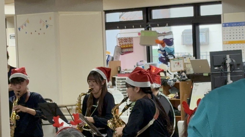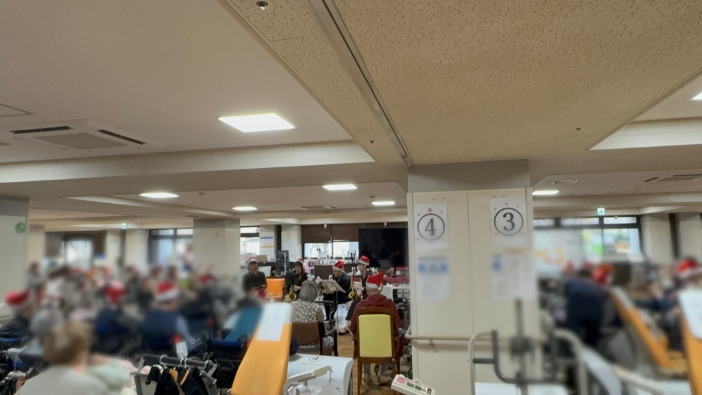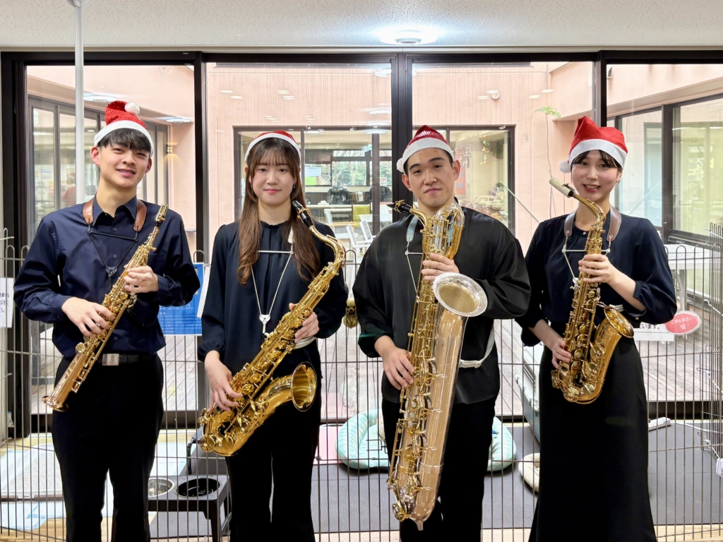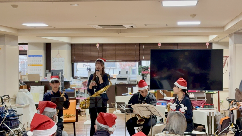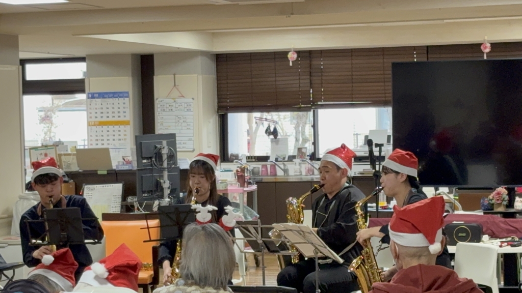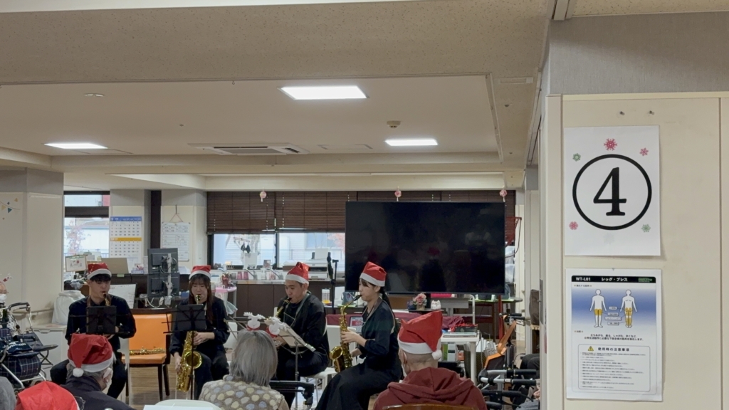 2025年12月21日(日)、埼玉県の介護施設にて、友人会サクソフォン四重奏団さまによる約45分のクリスマスコンサートが開催されました。
